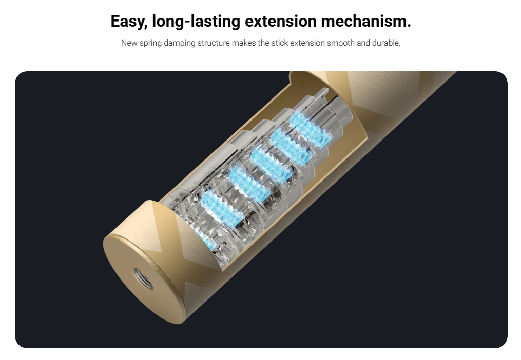 - For best stability, only extend the selfie stick to 2 sections (~70cm) with the ONE RS 1-Inch 360 Edition. When extending longer, please use discretion and assess the stability of the camera while shooting. Do not use long selfie sticks at high speeds or in action scenarios.