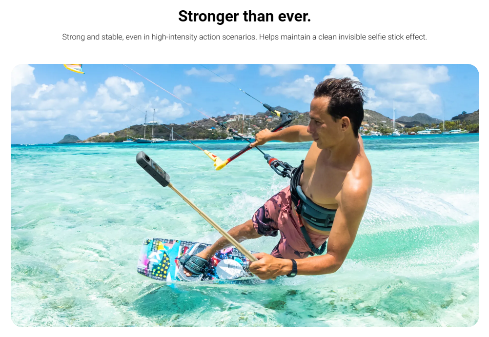 - High strength materials enable stable use with Insta360 cameras.