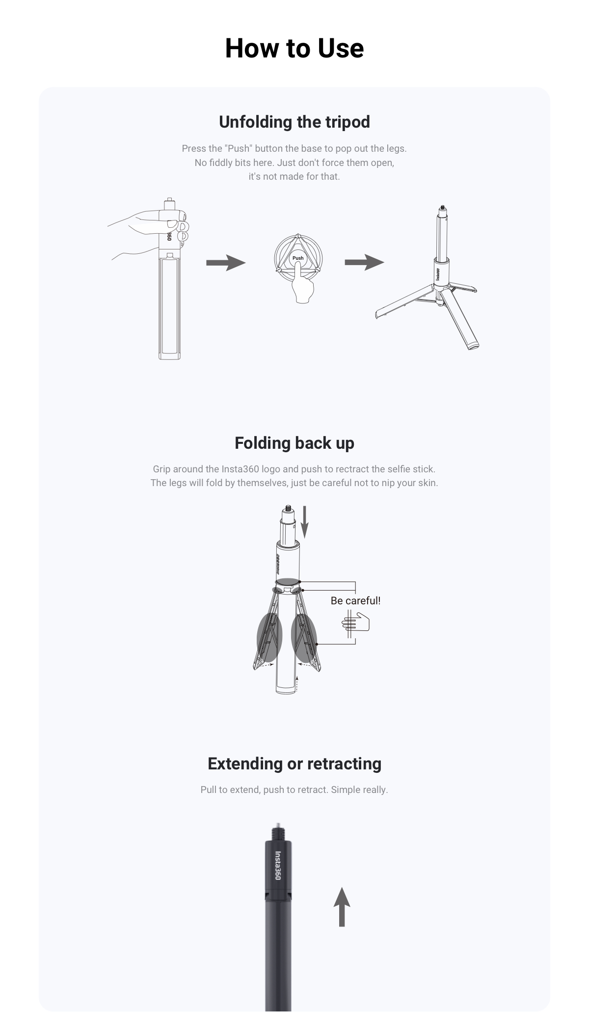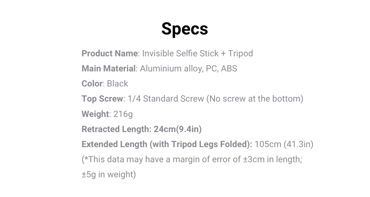 Dual Use: Use as an invisible selfie stick, or fold out the built in tripod to set up and shoot.